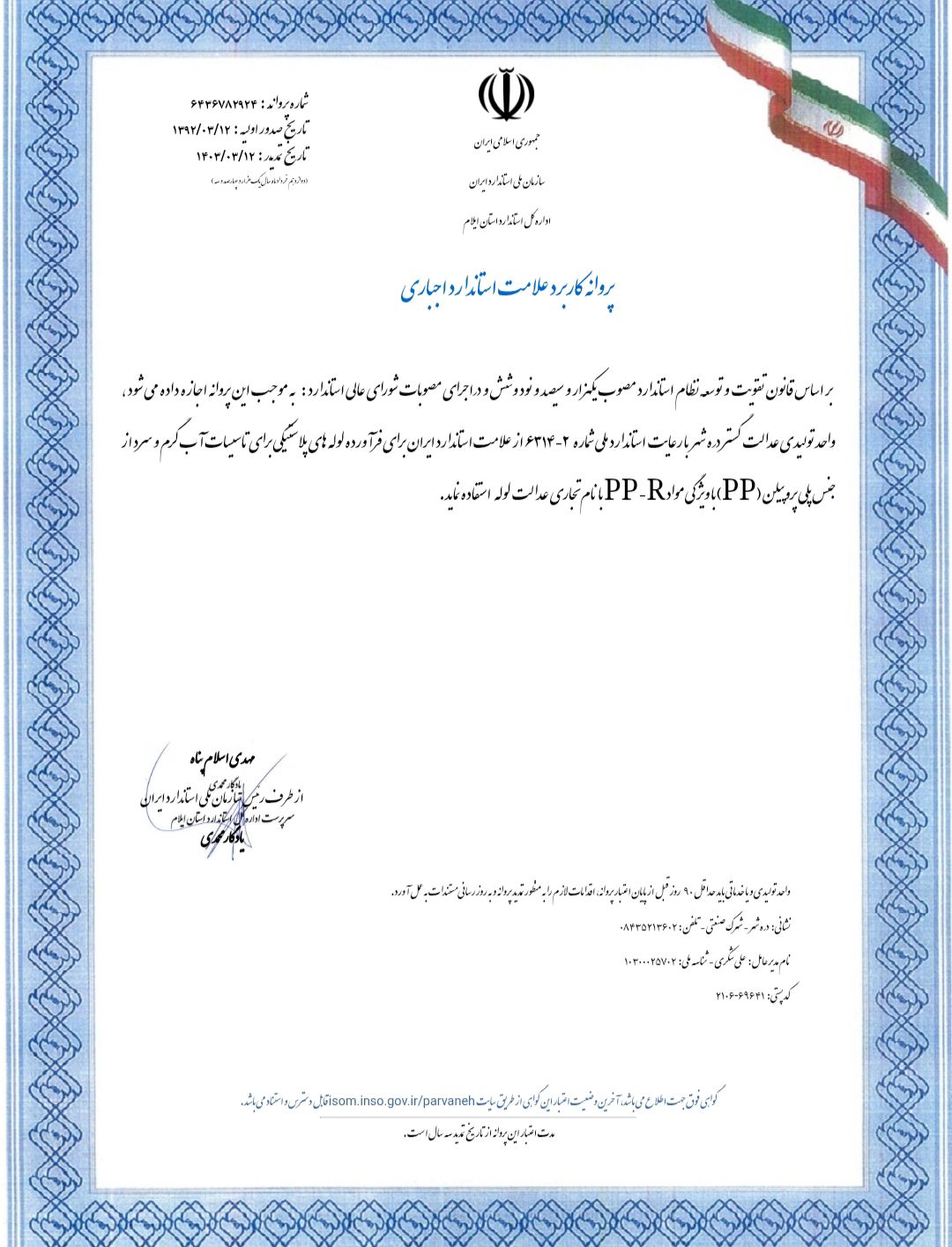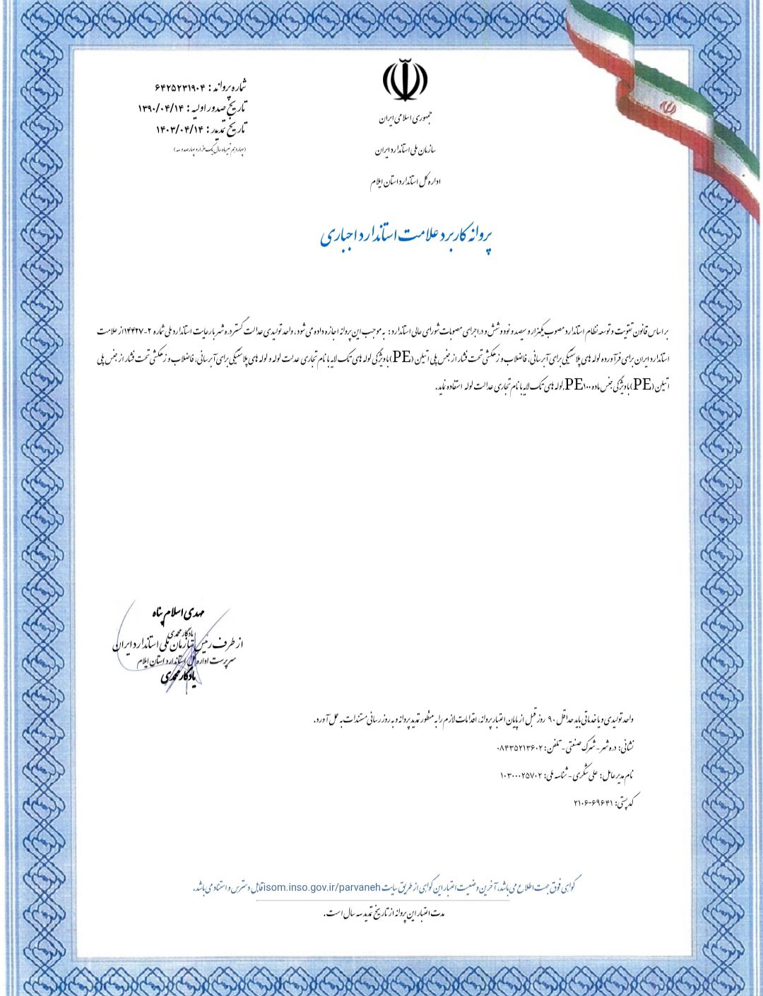 گواهینامه ها و پروانه استانداردهای شرکت عدالت گستر